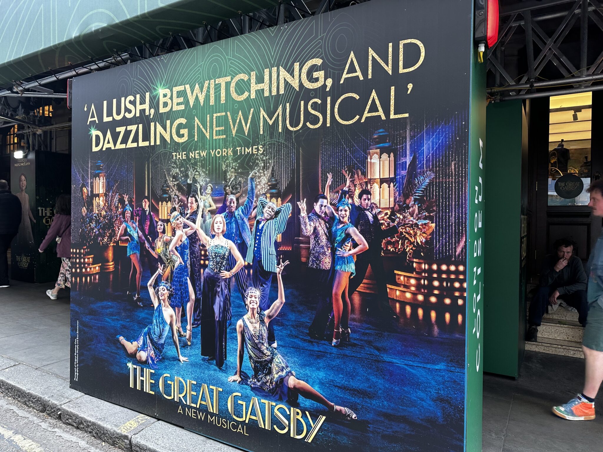 Additionally, we produced and installed 125sqm of promotional graphics, featuring bold, Gatsby-styled artwork. These included banners running down each side of the structure and a commanding full-width gantry banner that spanned the entrance. The visual language combined elegance with impact, inviting onlookers into the world of the performance.