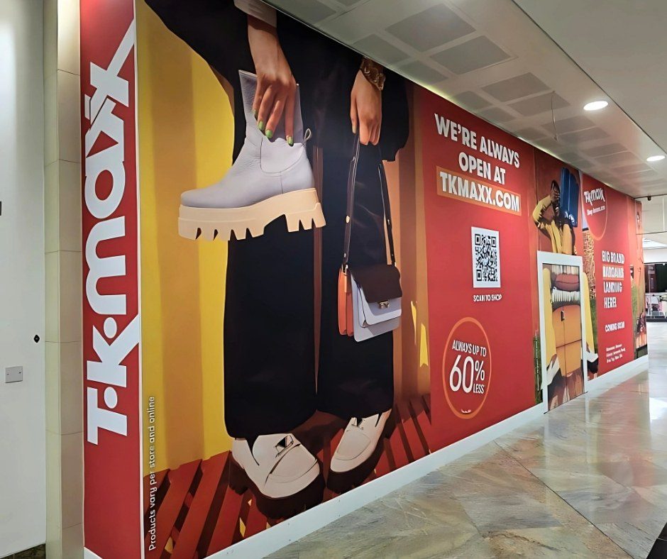 In line with our ethos – ‘Smart. Sustainable. Standout’ – we recently partnered with TK Maxx to deliver a bespoke retail hoarding graphics solution for their new store at the Oracle Shopping Centre in Reading.