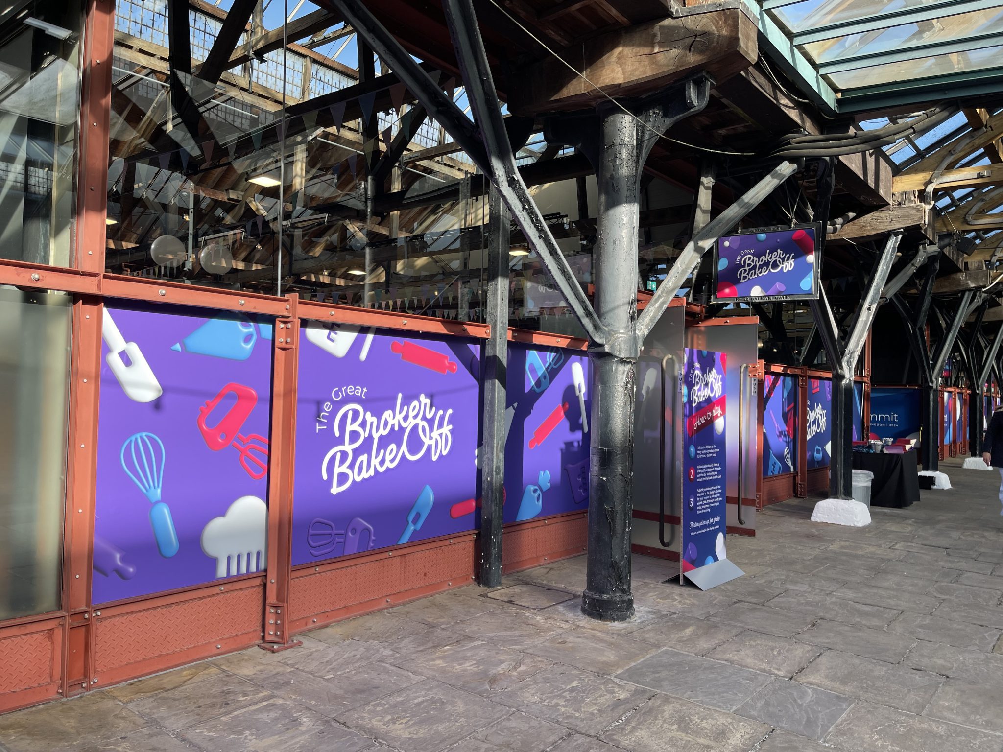 - Striking Banners: We installed bold, high-quality banners that served as focal points and stand-out signage for the event. Their placement and design were meticulously planned to complement Tobacco Dock’s unique architecture.