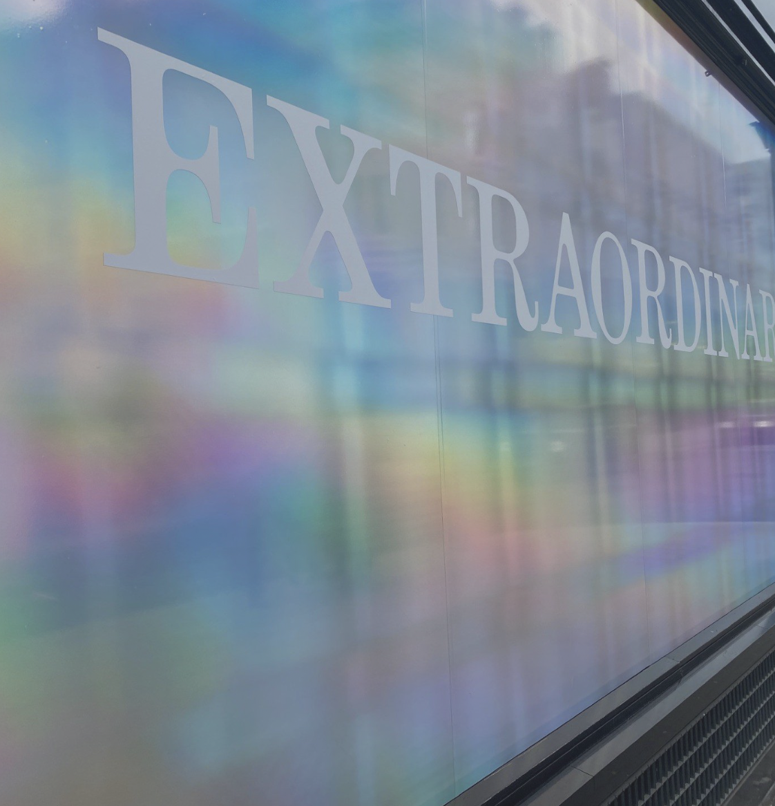 After discussing various options with DNCO, we proposed a holographic design using cut white vinyl. The holographic effect was chosen for its ability to create a dynamic and engaging visual experience, especially when reflecting sunlight.
