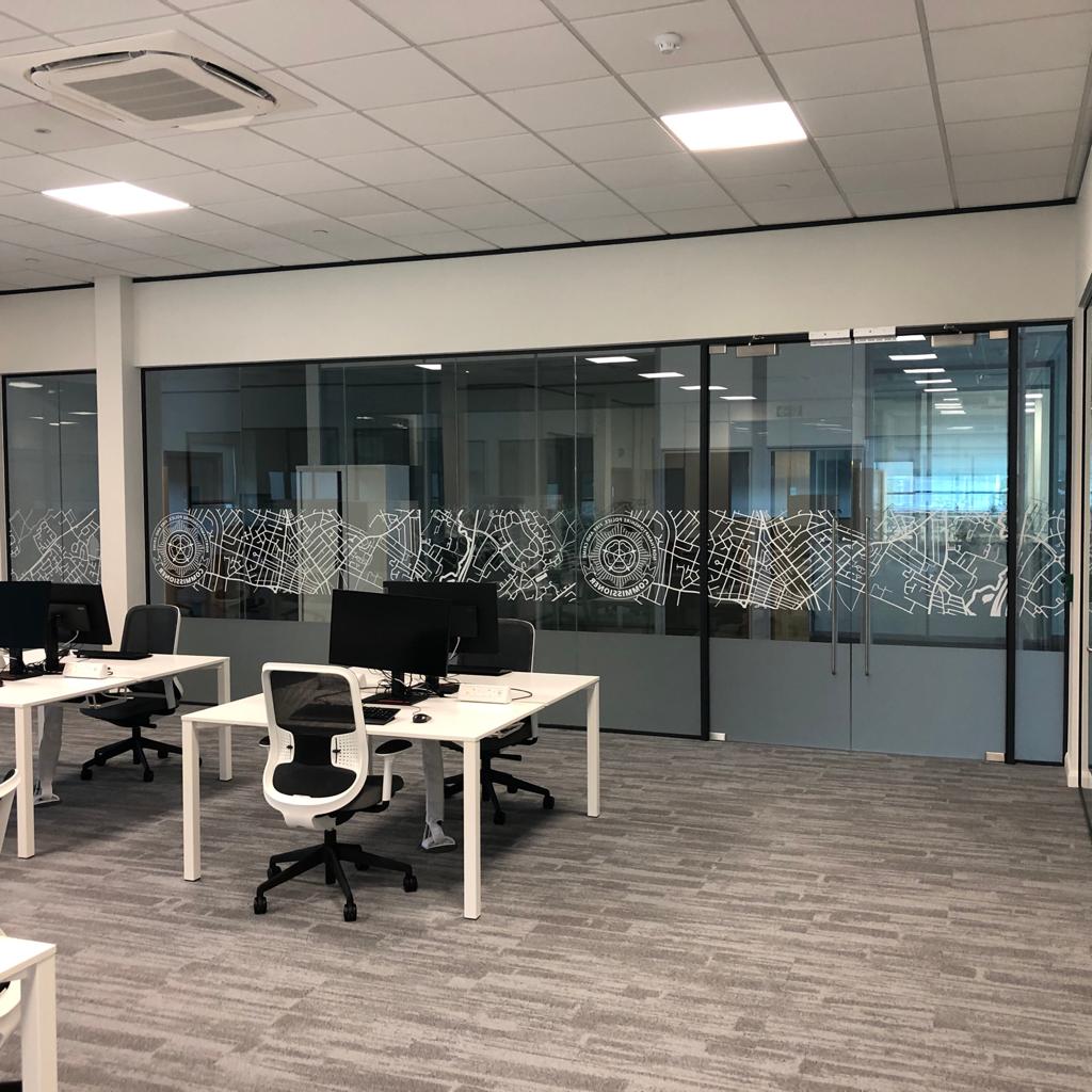 Glass manifestations are widely used across office interiors, public buildings, hospitality spaces, exhibitions, and retail shopfronts.