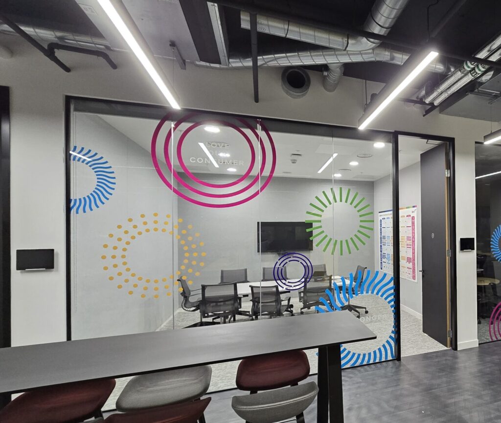 - With access to a vast range of films, we can print designs that achieve stunning branded installations, aligning with your interior style and meeting practical needs.